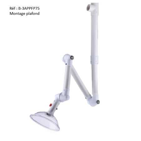 - Structure 100% polypropylène : Résistance chimique maximale entièrement fabriqué en polypropylène, ce bras offre une résistance inégalée aux produits chimiques, aux solvants et aux agents corrosifs. C'est la solution de premier choix pour les laboratoires, l'industrie pharmaceutique, l'électronique ou tout environnement où les émanations sont agressives.