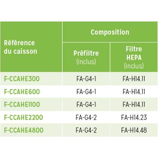 Préfitre et filtre HEPA inclus dans le prix, le caisson sera livré prêt à l’emploi avec les filtres préinstallés.