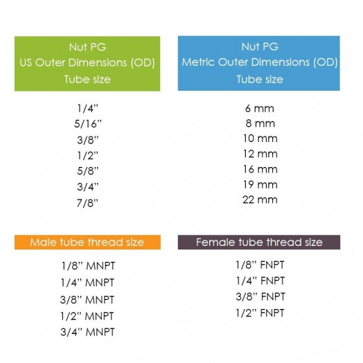 Raccord droit union - Ce fichier présente un récapitulatif des dimensions disponibles pour le raccord droit union. Egalement la correspondance en millimètres